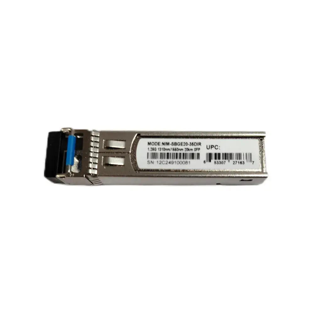 The NIM-SBGE20-35DIR is a 1000BASE-LX SFP fiber transceiver module designed for single-mode backbone and long-reach links in networking and security infrastructure. It provides a directional 1310nm transmit / 1550nm receive optical interface in a compact SFP form factor, suitable for switches, routers, and security appliances that accept standard SFP modules.